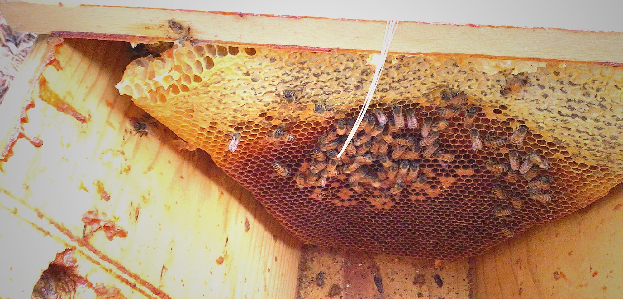 She's a robust full top-bar hive packed with honey for the winter ahead. Might-o got her name for her rapid build up in the spring.